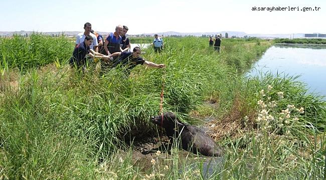 AKSARAY'DA KANALA DÜŞEN İNEKLERE KURTARMA OPERASYONU