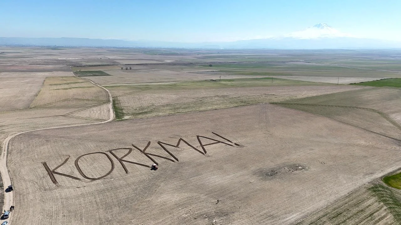 Tarlasındaki çalışmasını tamamladıktan sonra hislerini paylaşan Kadir Filikçi, bir çiftçi olarak vatan sevgisini toprağa işlemenin gururunu şu sözlerle anlattı: “Sabah saatlerinde Aksaray Belediyemizin sosyal medya hesabında İstiklal Marşımızın kabulüyle ilgili bir paylaşım gördüm. Mehmet Akif Ersoy’un ‘Korkma’ şeklinde başlayan o dizesinde çok etkilendim. Biz çiftçiyiz, hayatımız toprağın içinde geçiyor. Ben de bu duyguyu nasıl ifade edebilirim diye düşündüm ve tarlama ‘Korkma’ yazmaya karar verdim. Millet olarak bu toprakların üstünde özgür yaşıyorsak o ‘Korkma’ sayesinde.